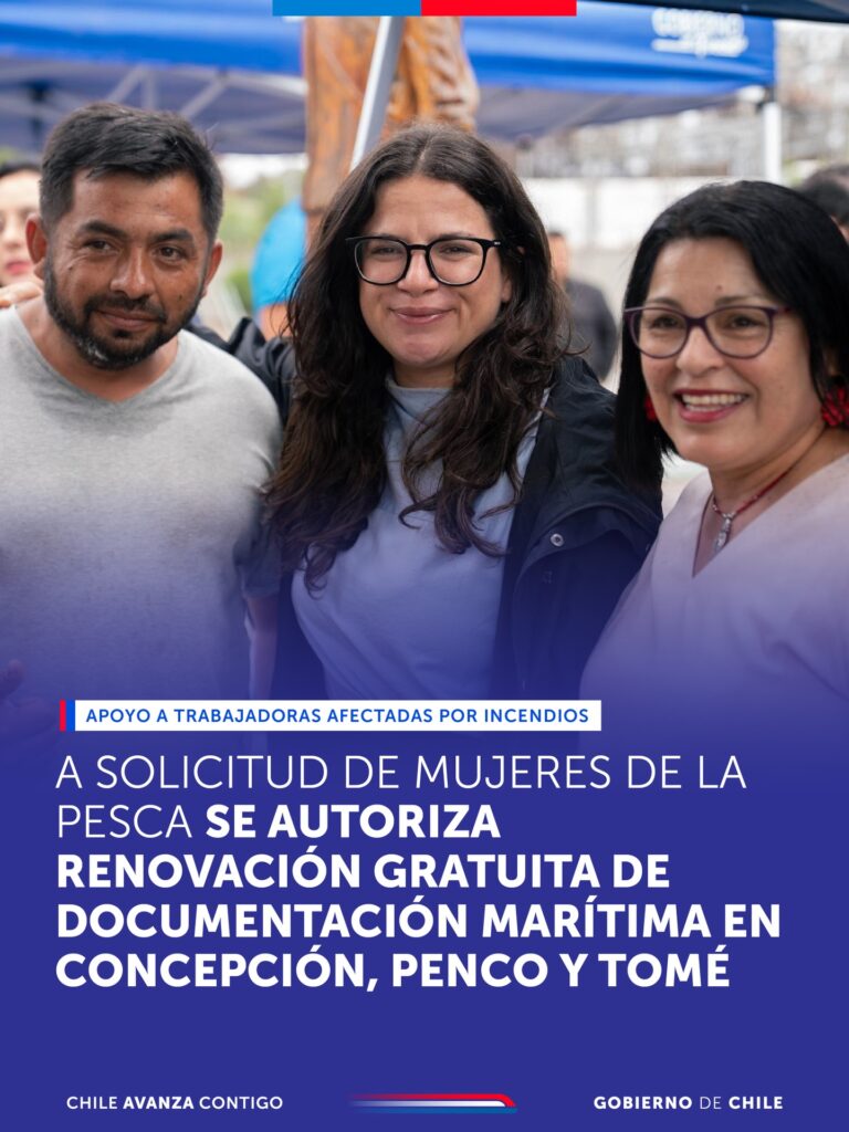 Como una medida de apoyo a las familias de la pesca artesanal afectadas por los incendios en la región del Biobío, el Gobierno autorizó la renovación gratuita de documentación marítima para pescadoras y pescadores de las comunas de Concepción, Penco y Tomé.